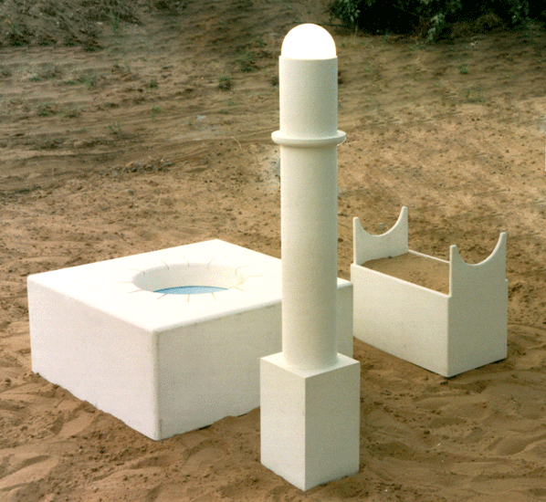 1992 ,Wood, glass, light ,90 x 90 x 40 cm., 160 x 25 x 25 cm, 60 x 60 x 40 cm., Israel